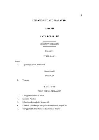 7 Keanggotaan Pasukan Polis. BAHAGIAN II TAFSIRAN 2. Akta 344 - Akta Polis 1967pdf - Google Docs.