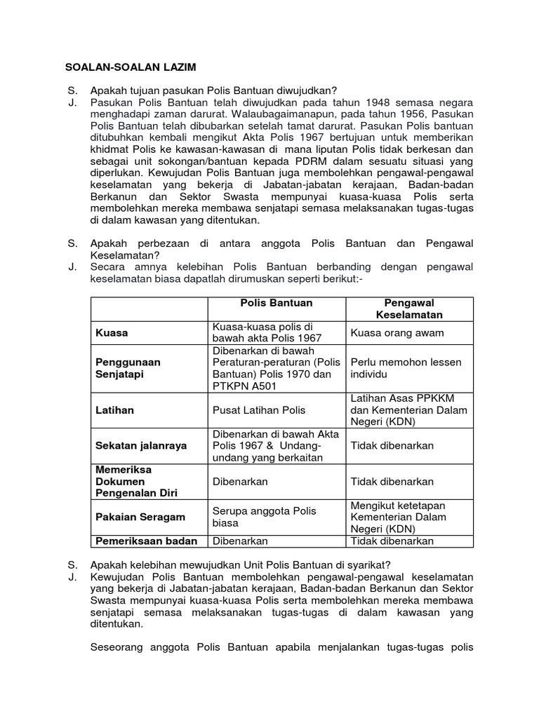 Soalan Lazim Polis Bantuan Pdf